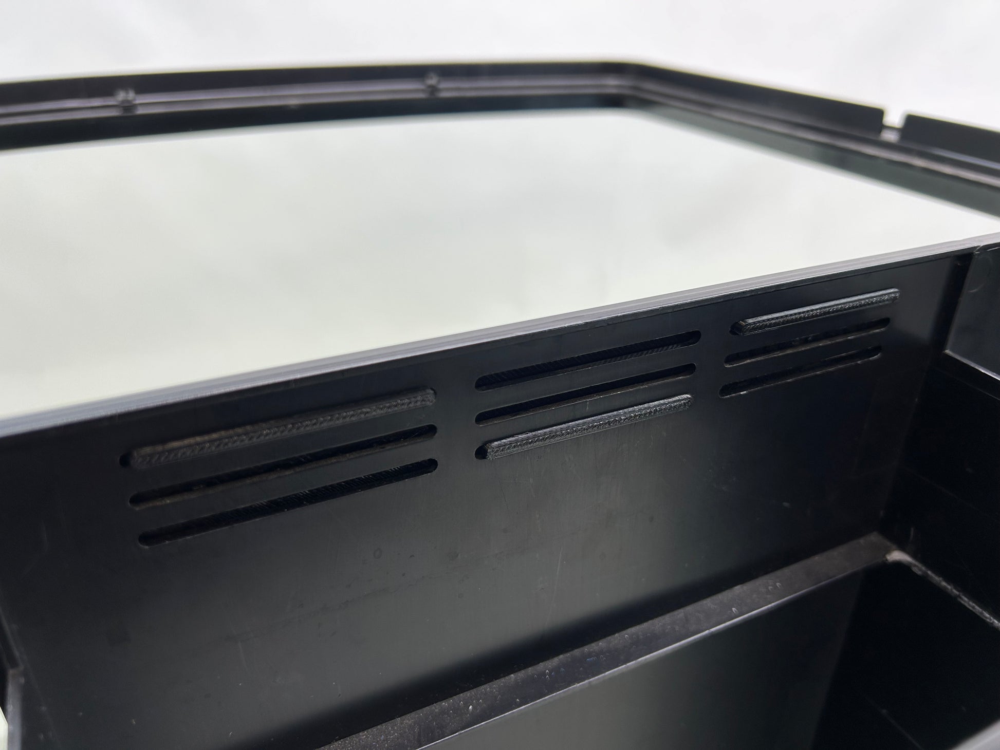 3d printed from flexible filament, this plug very easily installs into the center overflow. Installs in seconds and requires zero modifications to the aquarium. The front side of the plug has a slight textured finish to help it blend in and disappear to the false wall - it works so well you won't even notice its there.
