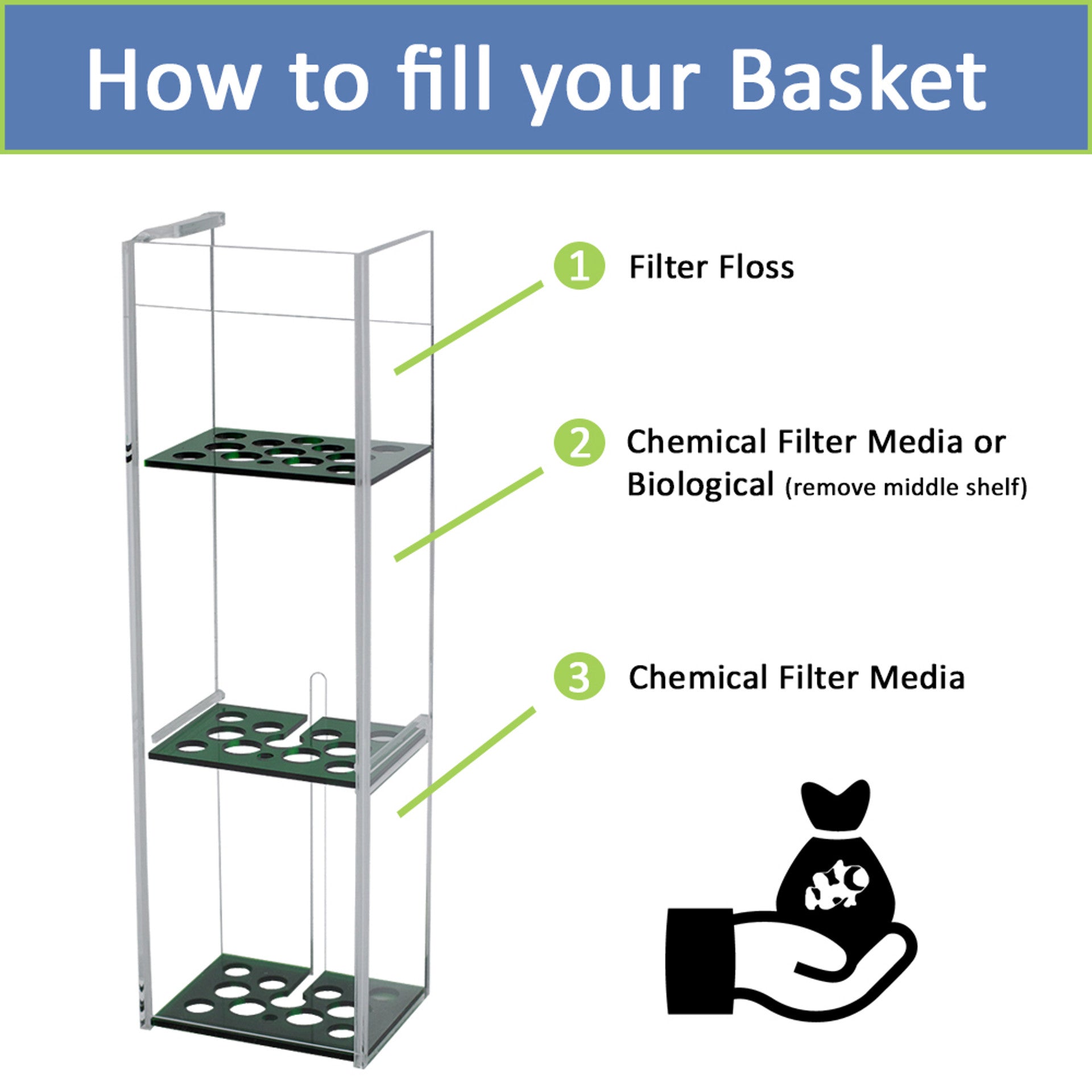 inTank aquarium-specific designed Media Baskets help improve the filtration and clarity of your aquarium while making maintenance extremely easy. What once was a dreaded chore of chaining filters and diving into the aquarium is now made easy utilizing a 4-Sided Tower Design system. The stock Fluval filtration is very dirty, an inTank filter system will fix flow issues with the stock design and sustain the aquarium longer.