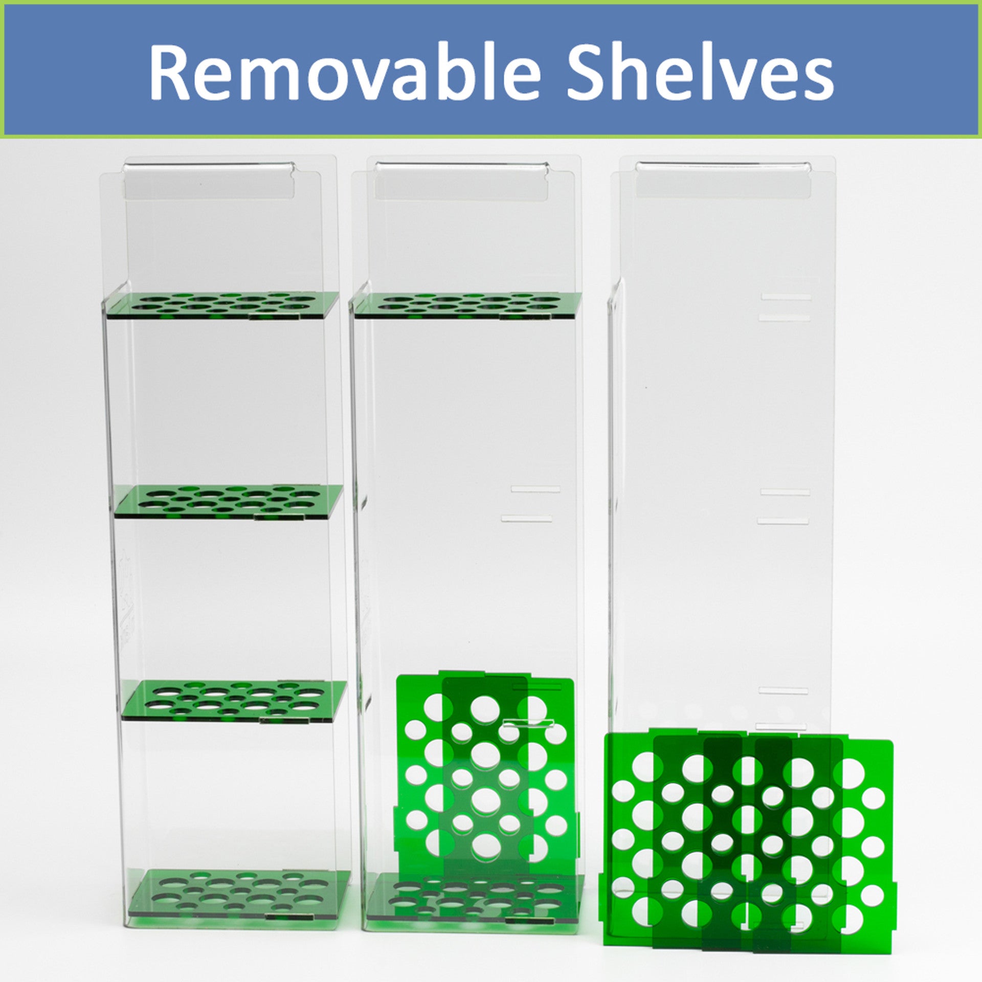 - Features a bent hanging bracket and a 4 shelf design. All shelves are removable
