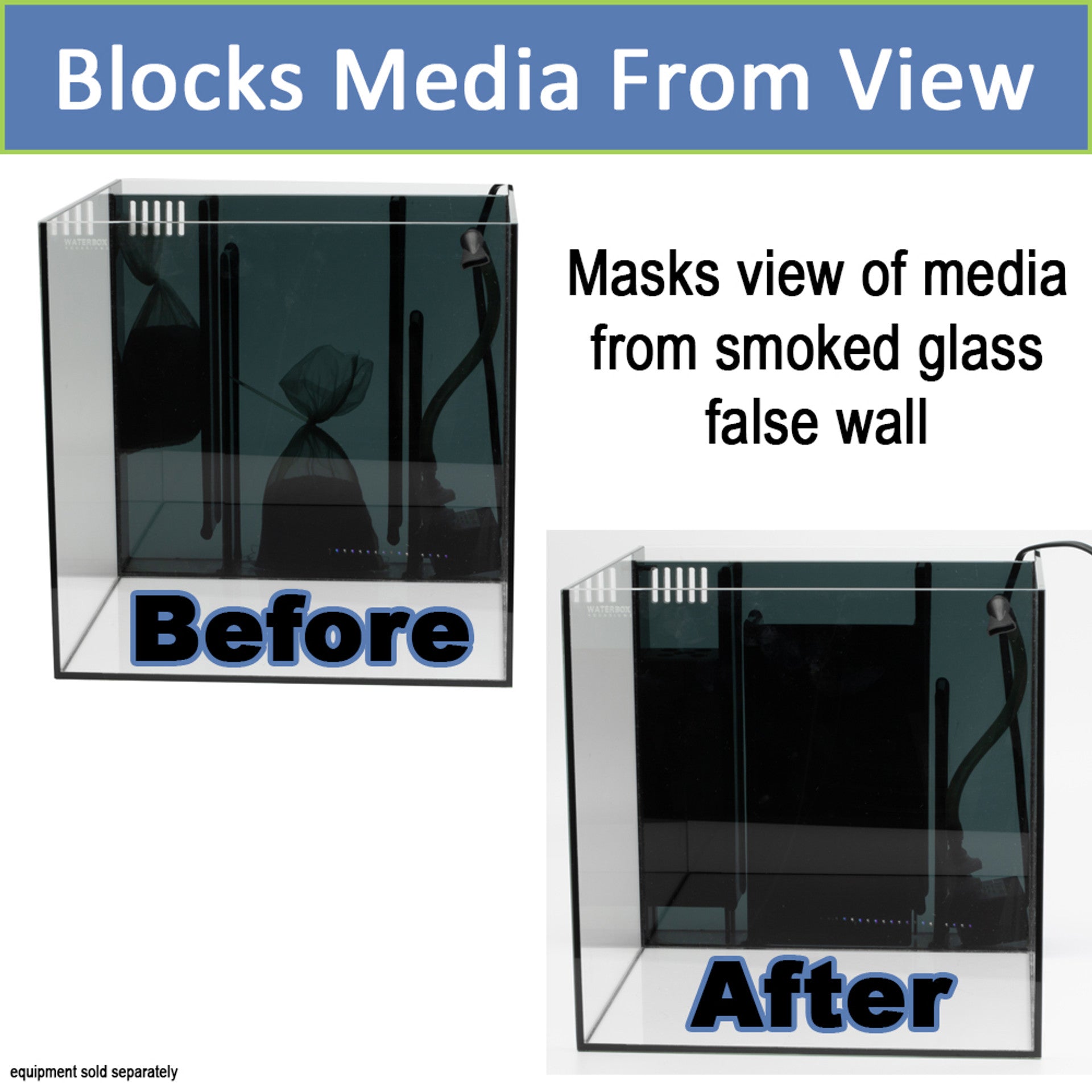- Black in color to hide media from view caused by the Waterbox smoked glass false wall