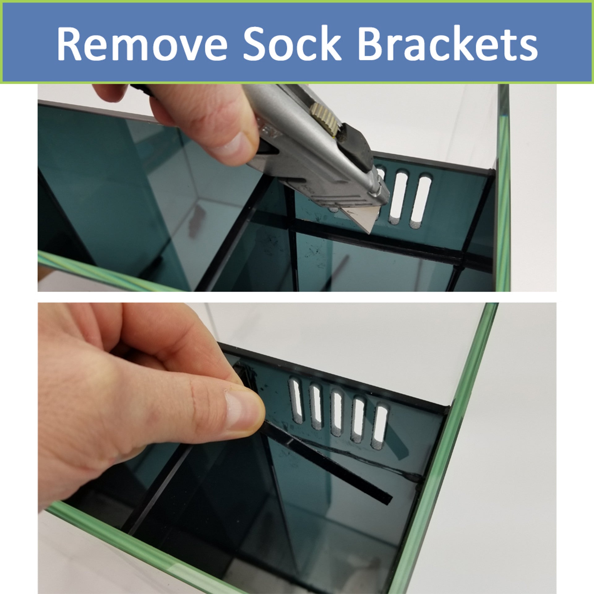 - Remove stock filter sock brackets to install - use a razor blade or simply rock up and down, they remove very easily