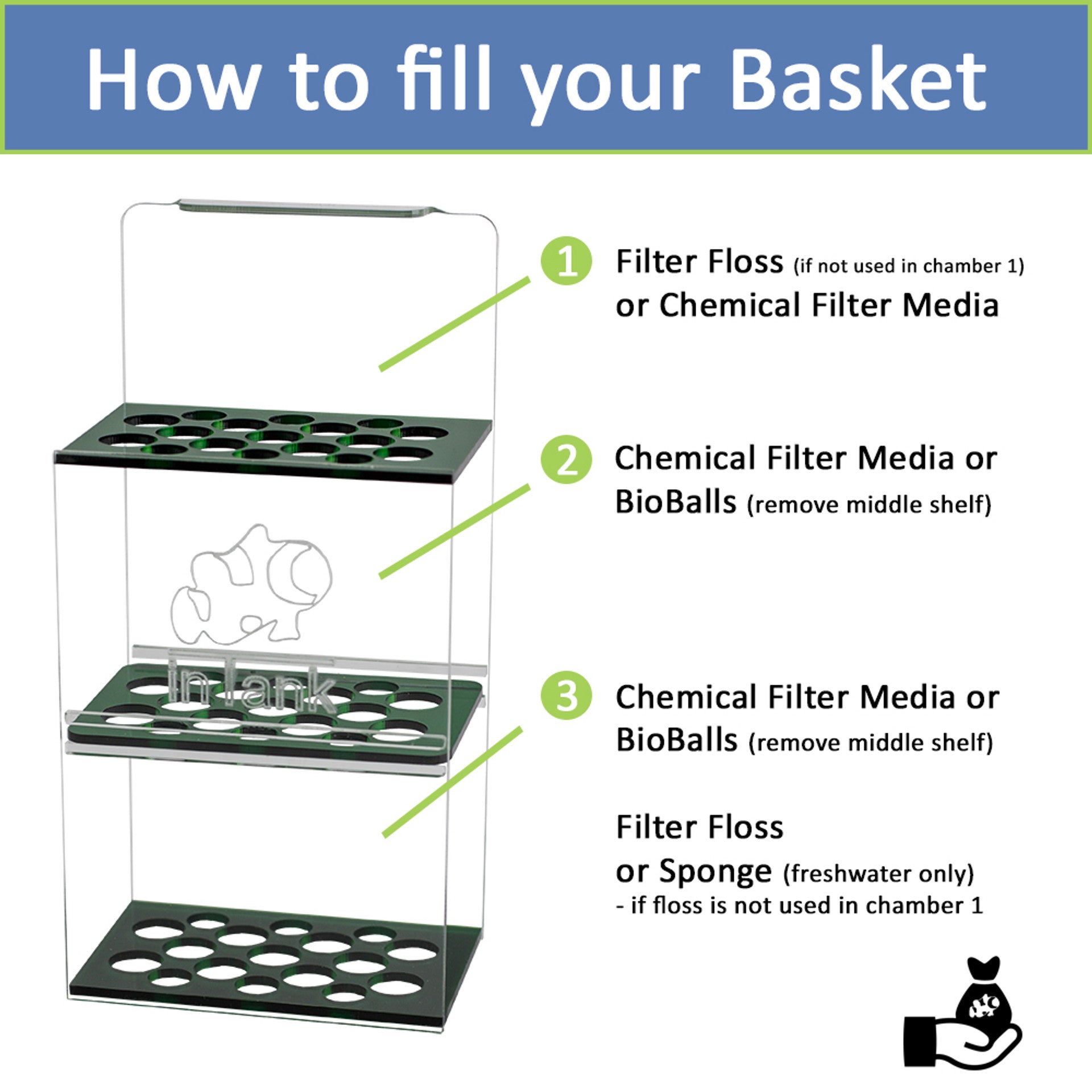 inTank aquarium-specific designed Media Baskets help improve the filtration and clarity of your aquarium while making maintenance extremely easy. What once was a dreaded chore of chaining filters and diving into the aquarium is now made easy utilizing a 2-Sided Tower Design system. The stock Fluval filtration is very dirty, an inTank filter system will fix flow issues with the stock design and sustain the aquarium longer.