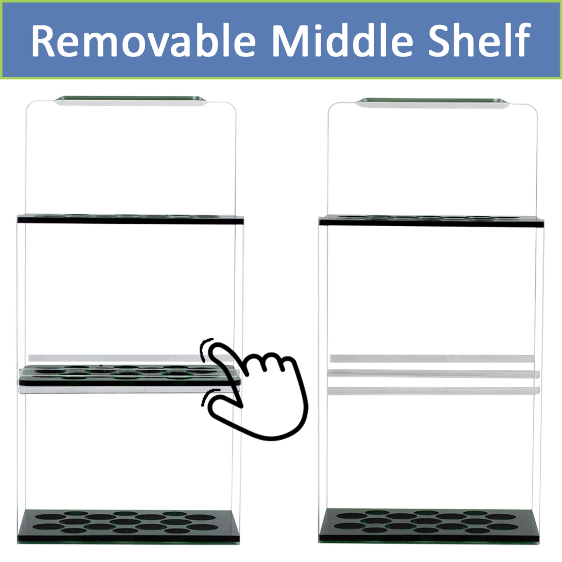 - Features a three shelf design with the middle shelf being removable, give you ultimate media options