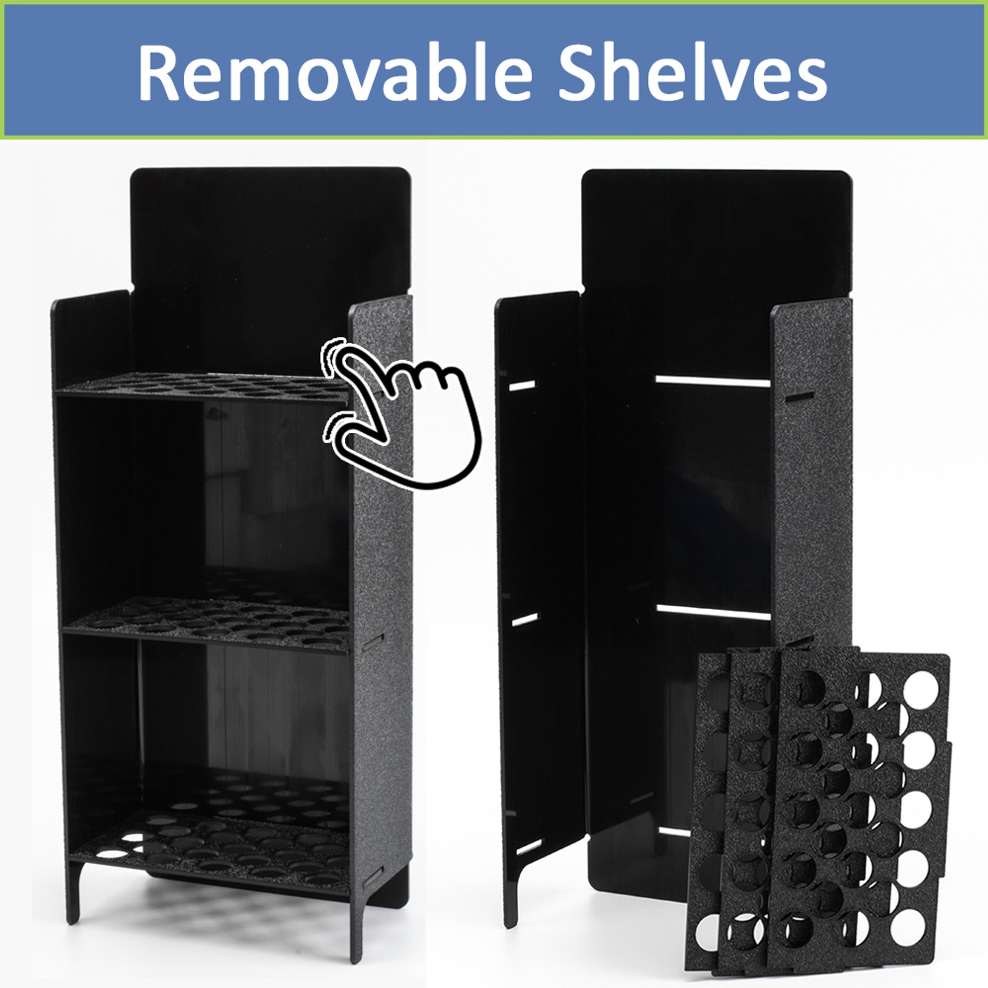 - Features a 3 shelf design. All shelves are removable and can support around 6 pounds each