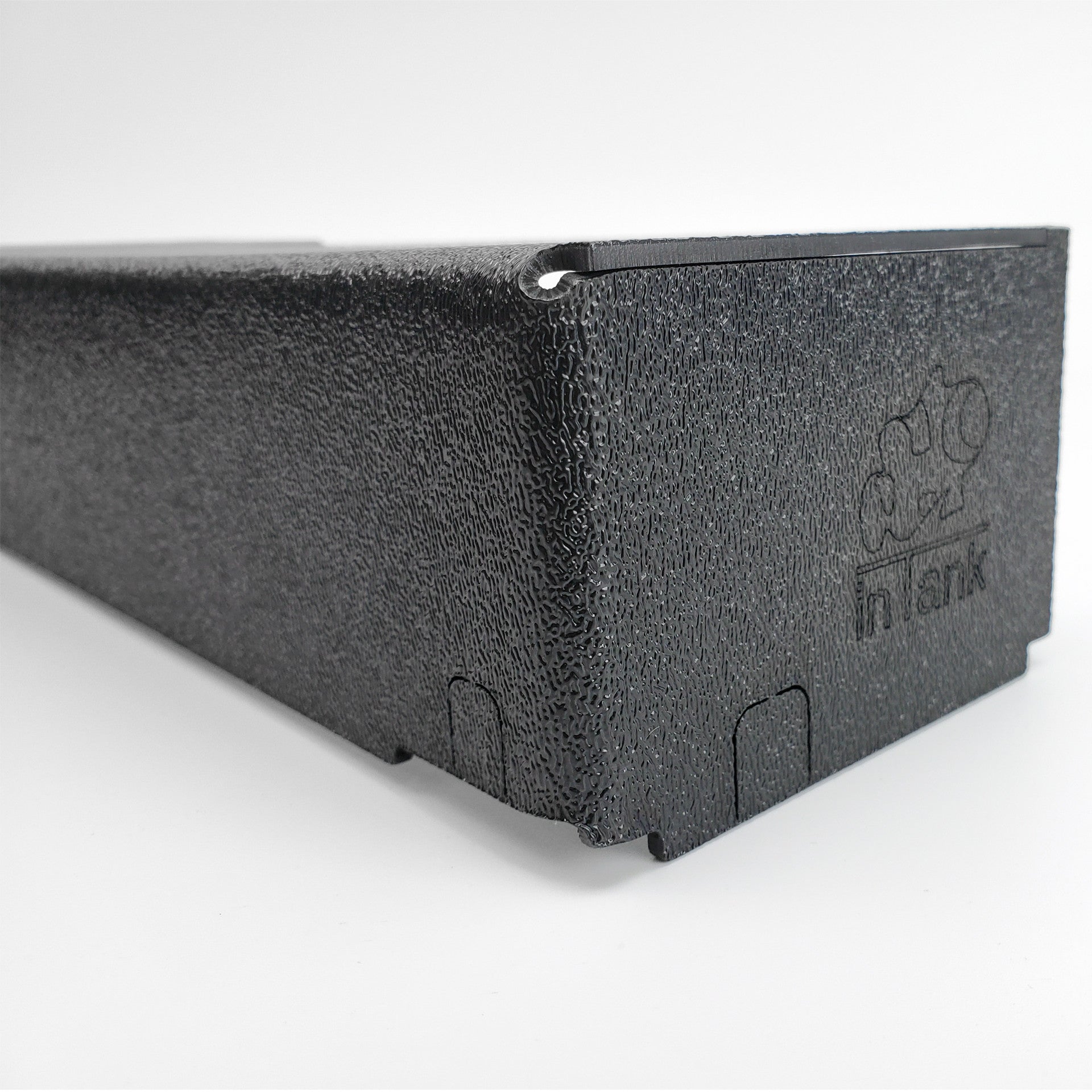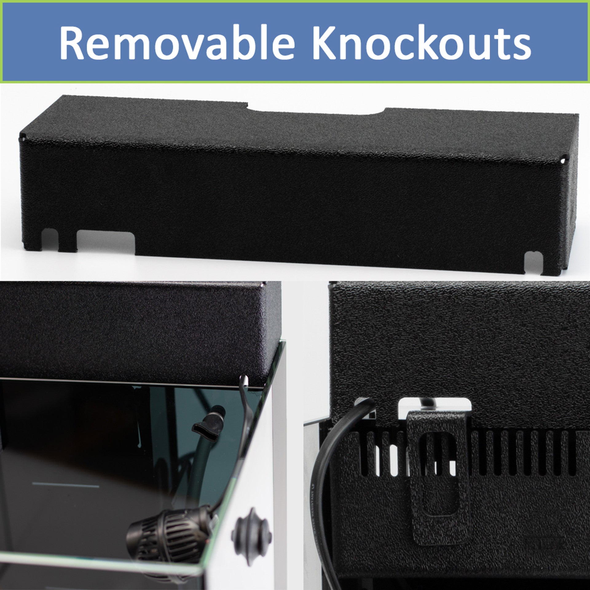 inTank aquarium-specific designed Filtration Covers hide unsightly equipment and cords around the rear filtration area. This cover is designed with notches to lock onto the false wall and rear glass. It features a knockout in the middle that can be removed without tools so that a lighting goose neck or mount can be installed to the rear of the aquarium.