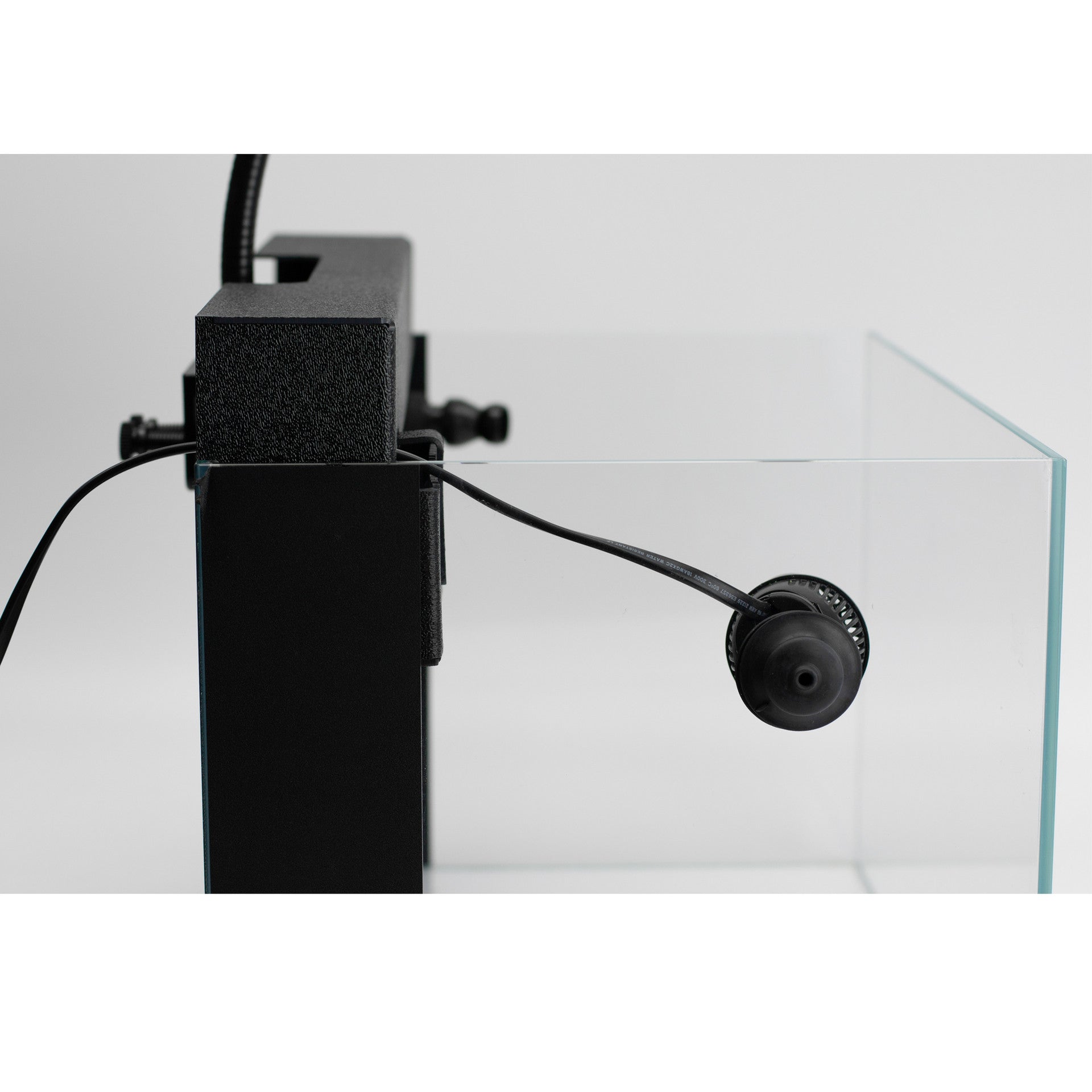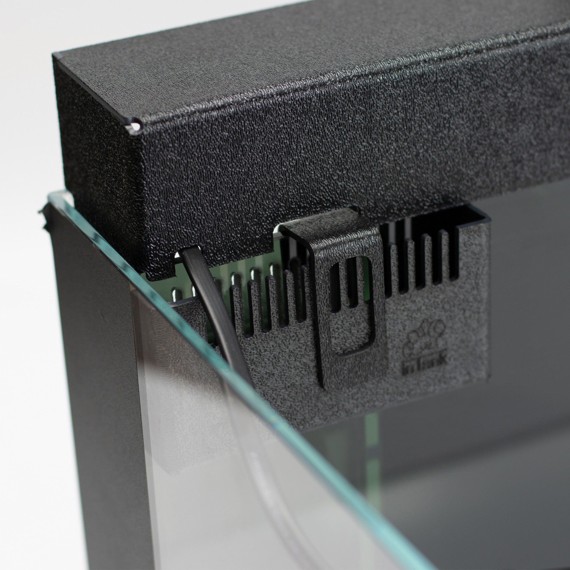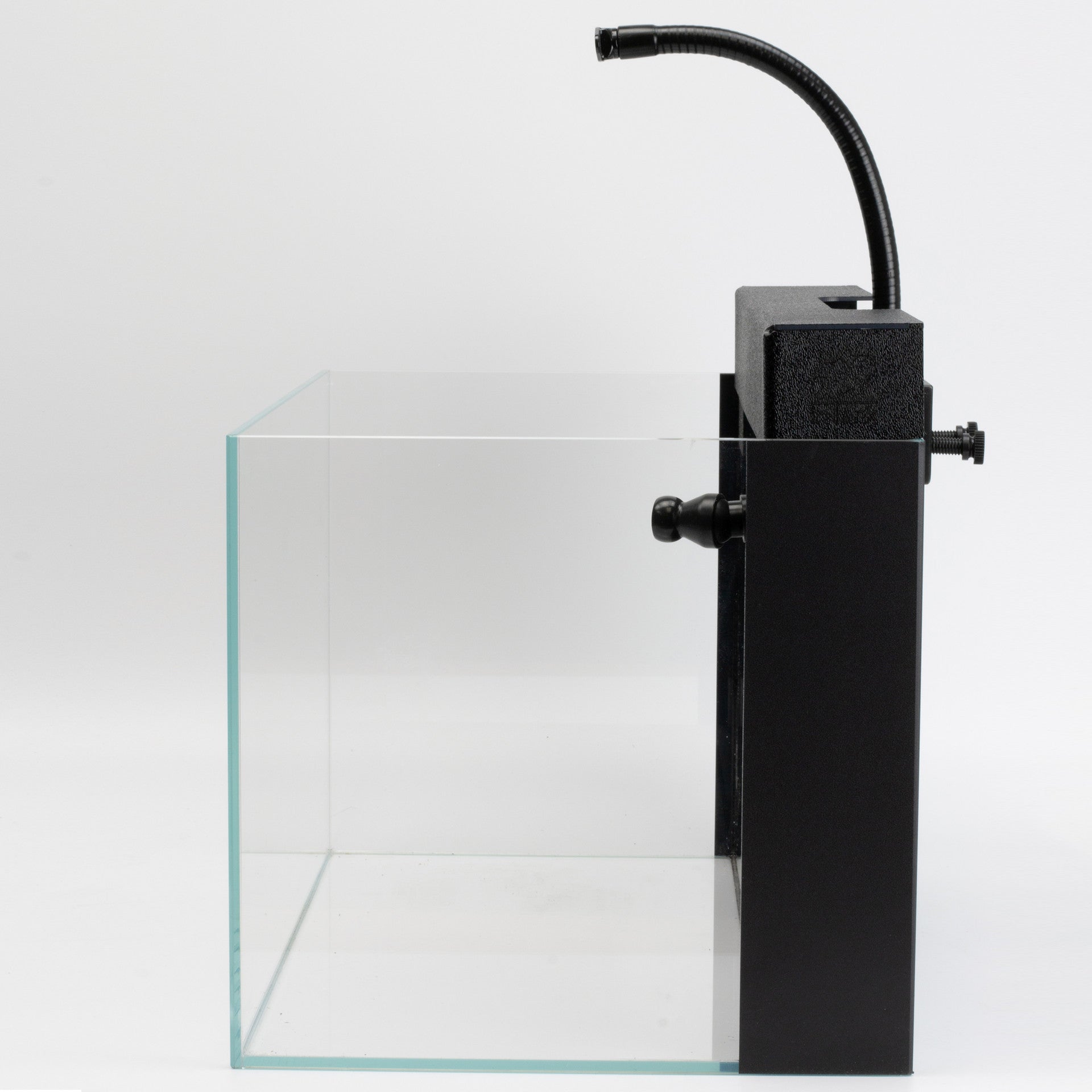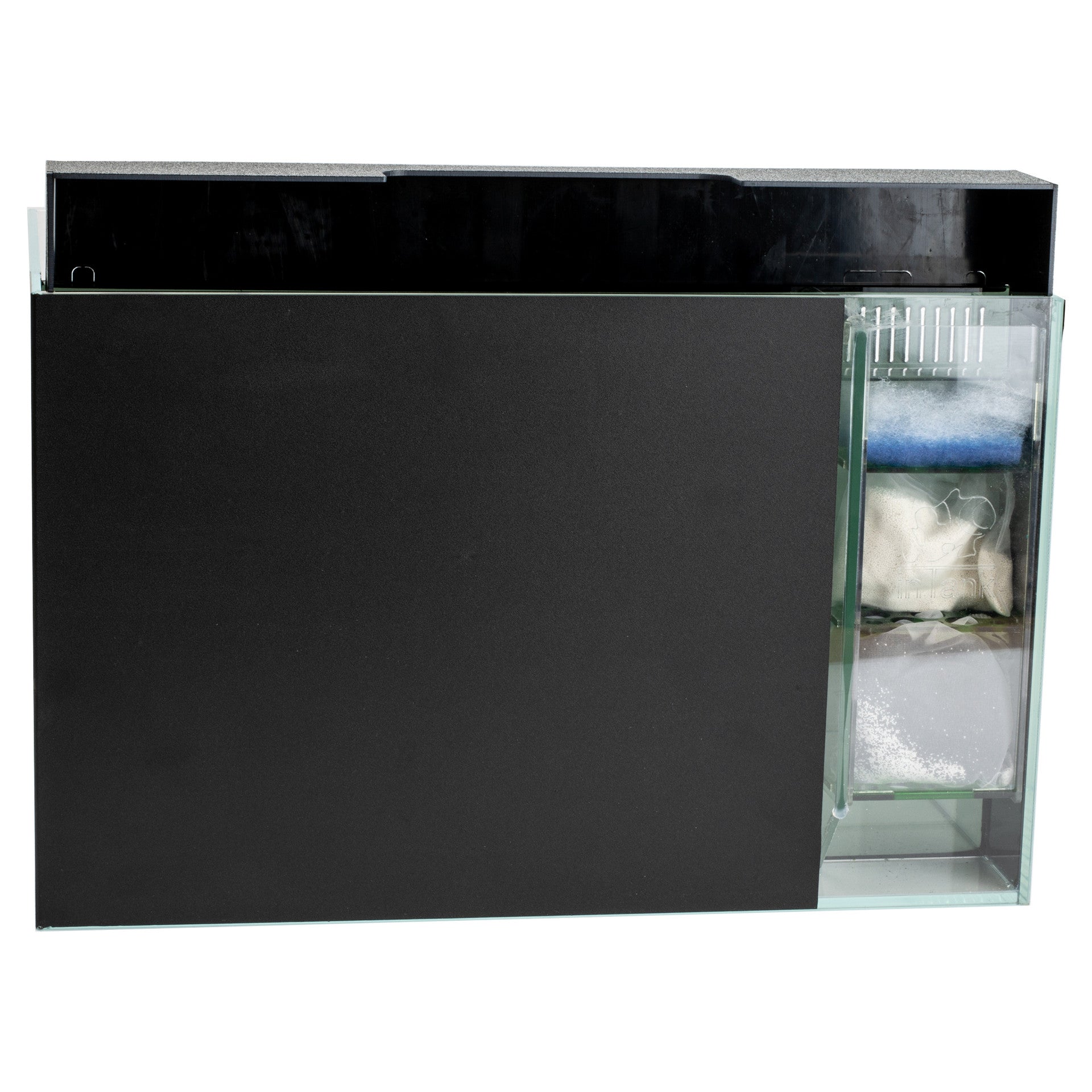 inTank aquarium-specific designed Filtration Covers hide unsightly equipment and cords around the rear filtration area. This cover is designed with notches to lock into the rear wall and slightly mounts over the front of the false wall for a clean install. It features a large cutout in the middle so that a lighting goose neck or mount can be installed to the rear of the aquarium. The cover includes knockouts on each side to route power cords to the rear of the aquarium from inside aquarium mounted equipment as well as a knockout for the inTank surface skimmer near the intake.