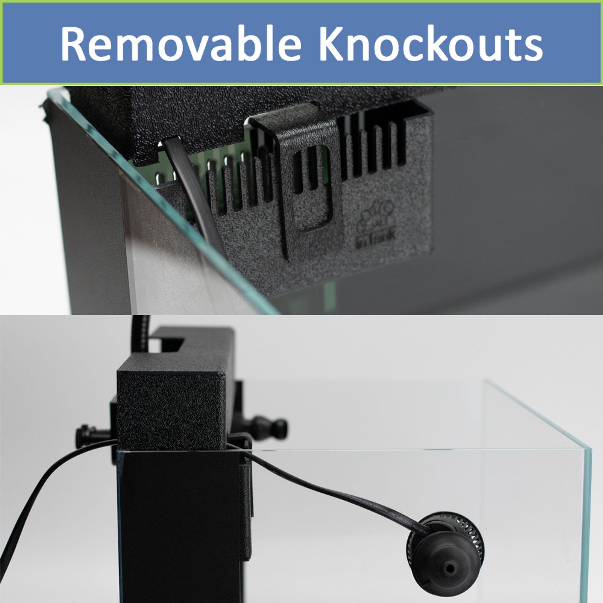 - Includes knockouts on each side to route power cords to the rear of the aquarium from inside aquarium mounted equipment