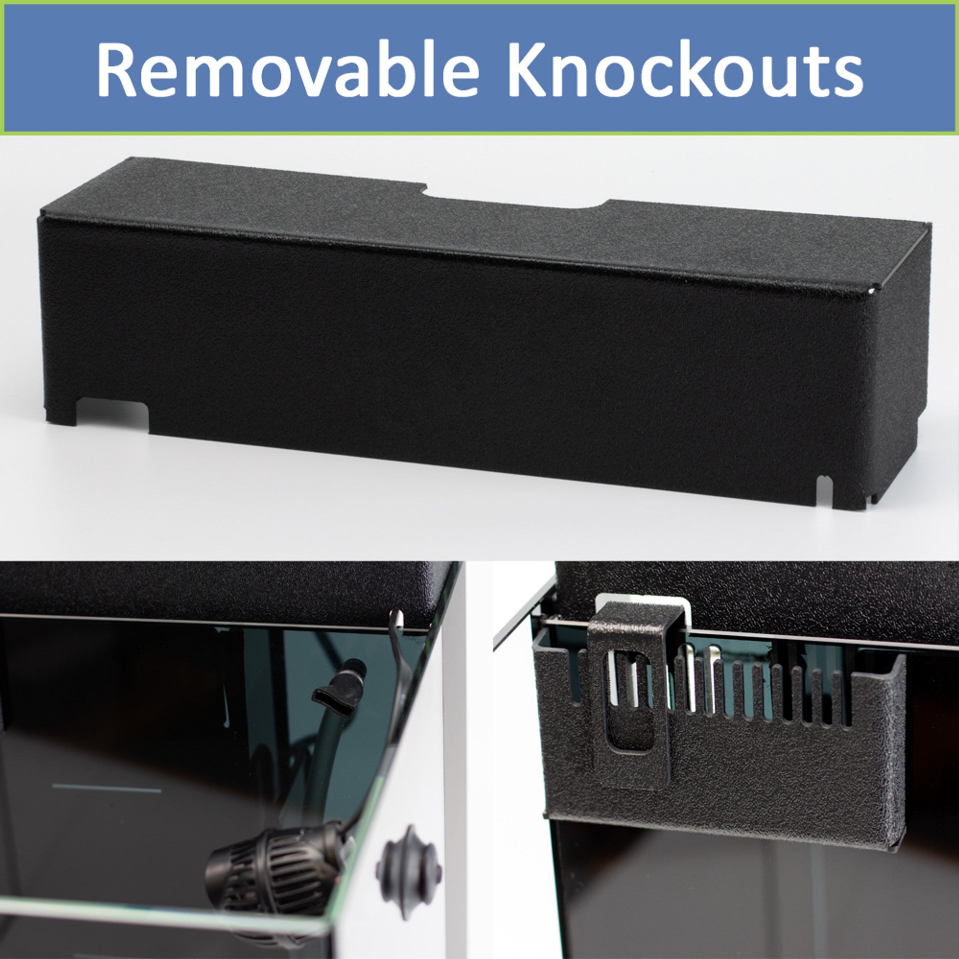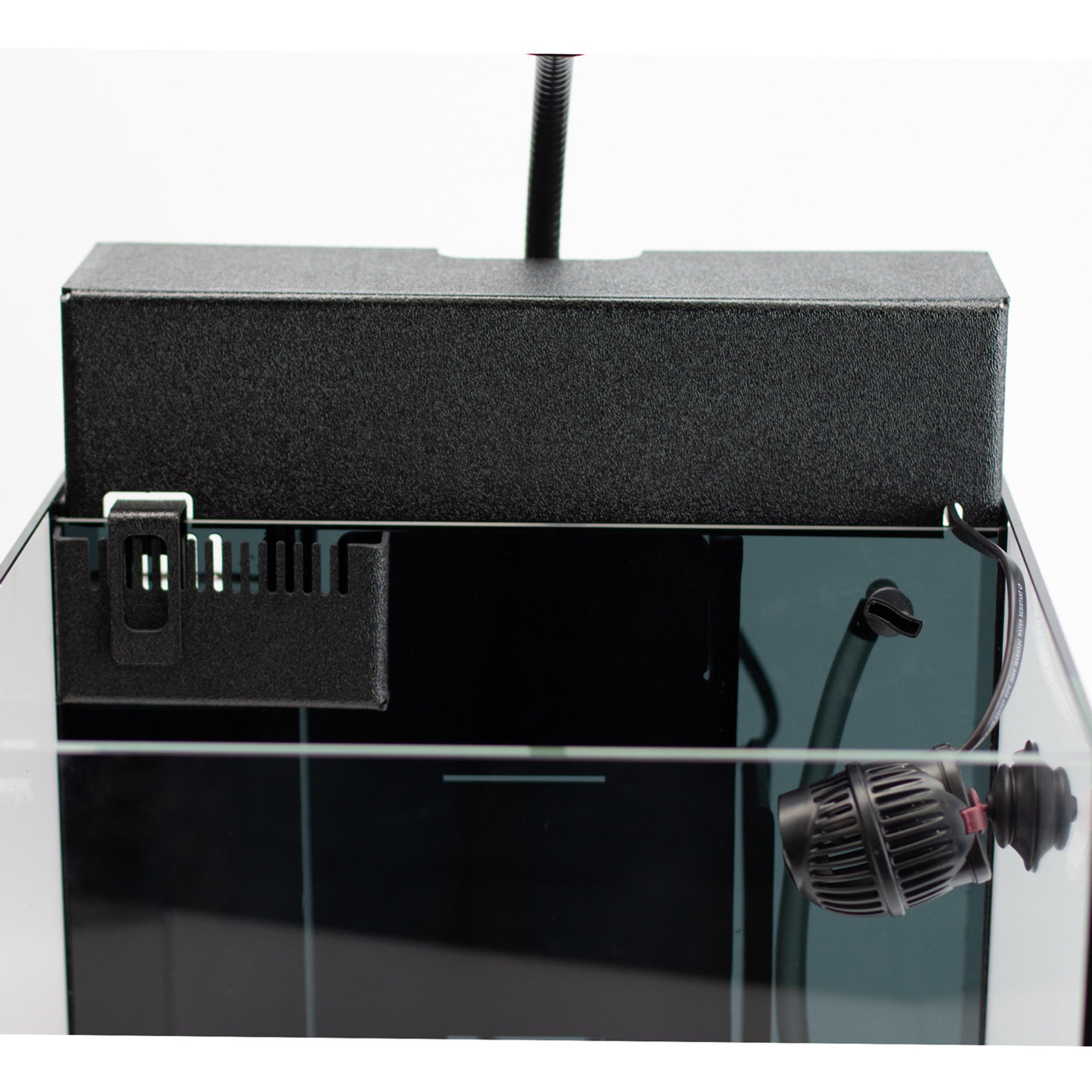 inTank aquarium-specific designed Filtration Covers hide unsightly equipment and cords around the rear filtration area. This cover is designed with notches to lock onto the false wall and rear glass. It features a knockout in the middle that can be removed without tools so that a lighting goose neck or mount can be installed to the rear of the aquarium.