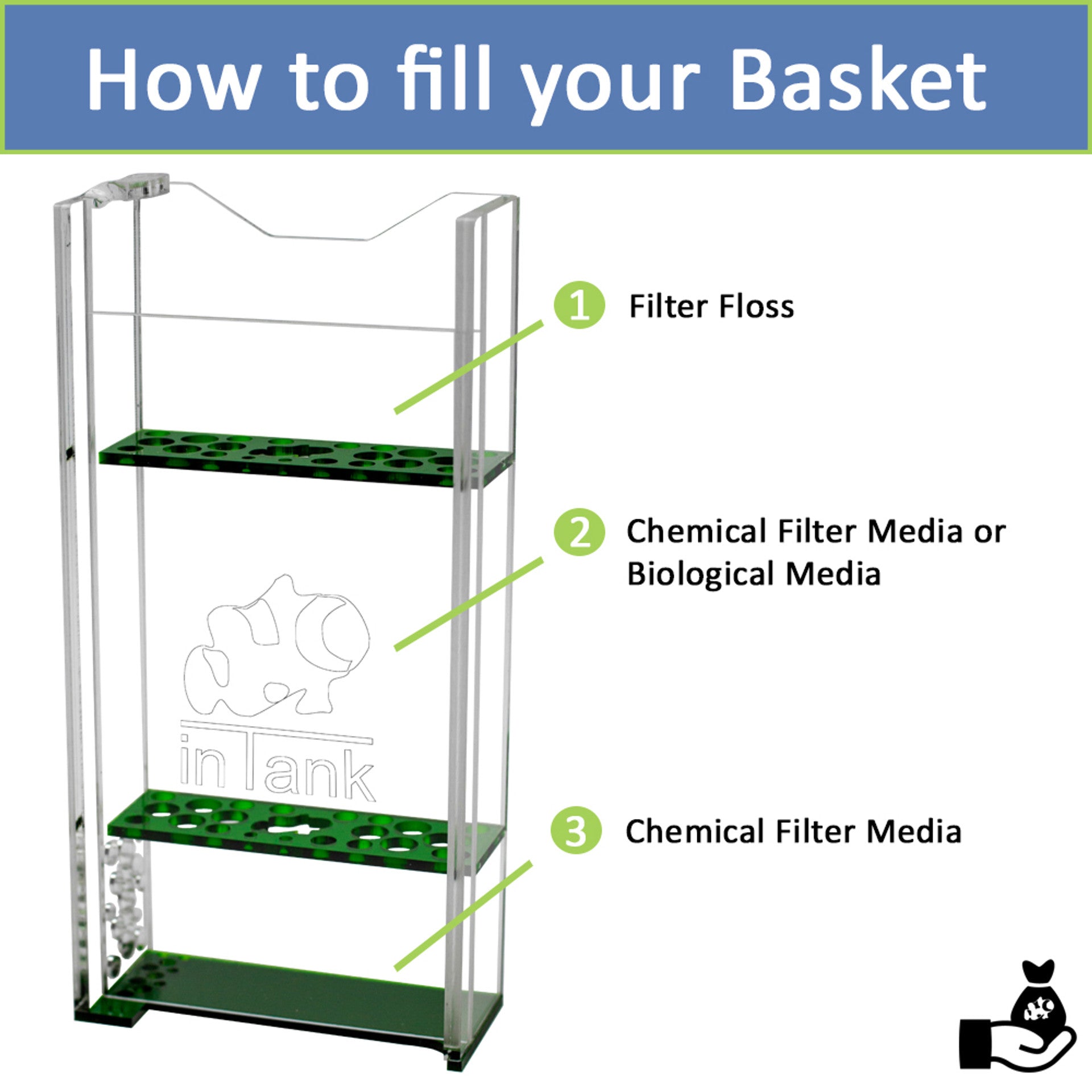 inTank aquarium-specific designed Media Baskets help improve the filtration and clarity of your aquarium while making maintenance extremely easy. What once was a dreaded chore of chaining filters and diving into the aquarium is now made easy utilizing a 4-Sided tower system. With an intelligent design the dirty - sponge filters are a thing of the past. inTank Media Baskets are manufactured with the highest quality materials and hand made in the USA.