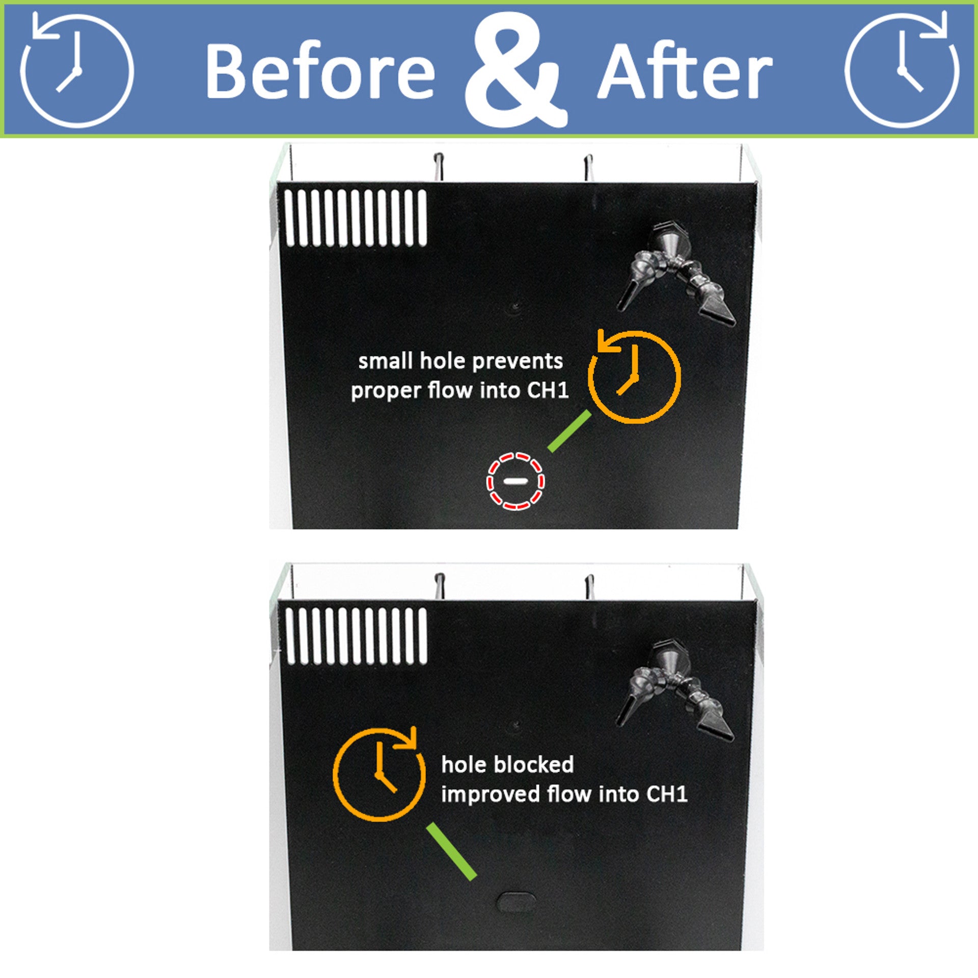 - Plug blocks off the hole in chamber two, improving flow and keeping rear chambers more clean