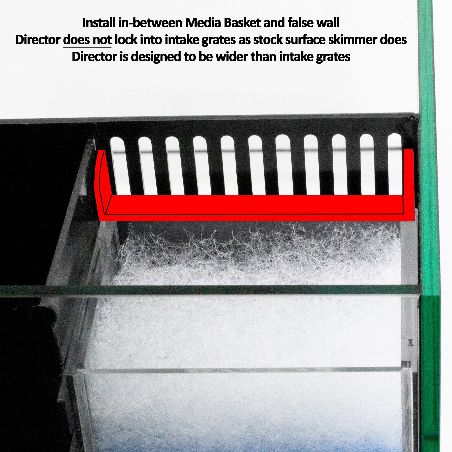 - Install Water Director in front of Media Basket between the Basket and the False Wall