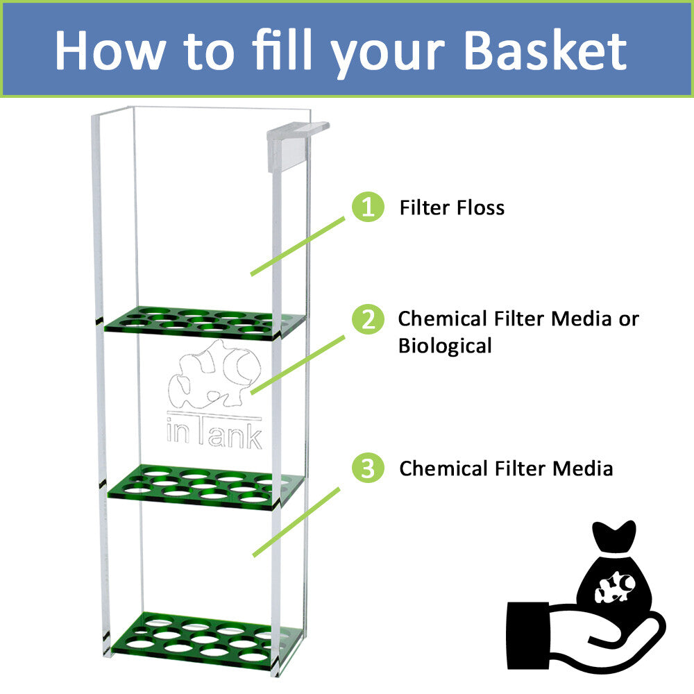 inTank designed aquarium-specific Media Baskets help improve the filtration and clarity of your aquarium while making maintenance extremely easy. What once was a dreaded chore of chaining filters and diving into the aquarium is now made easy utilizing a 3-Sided Tower Design system.