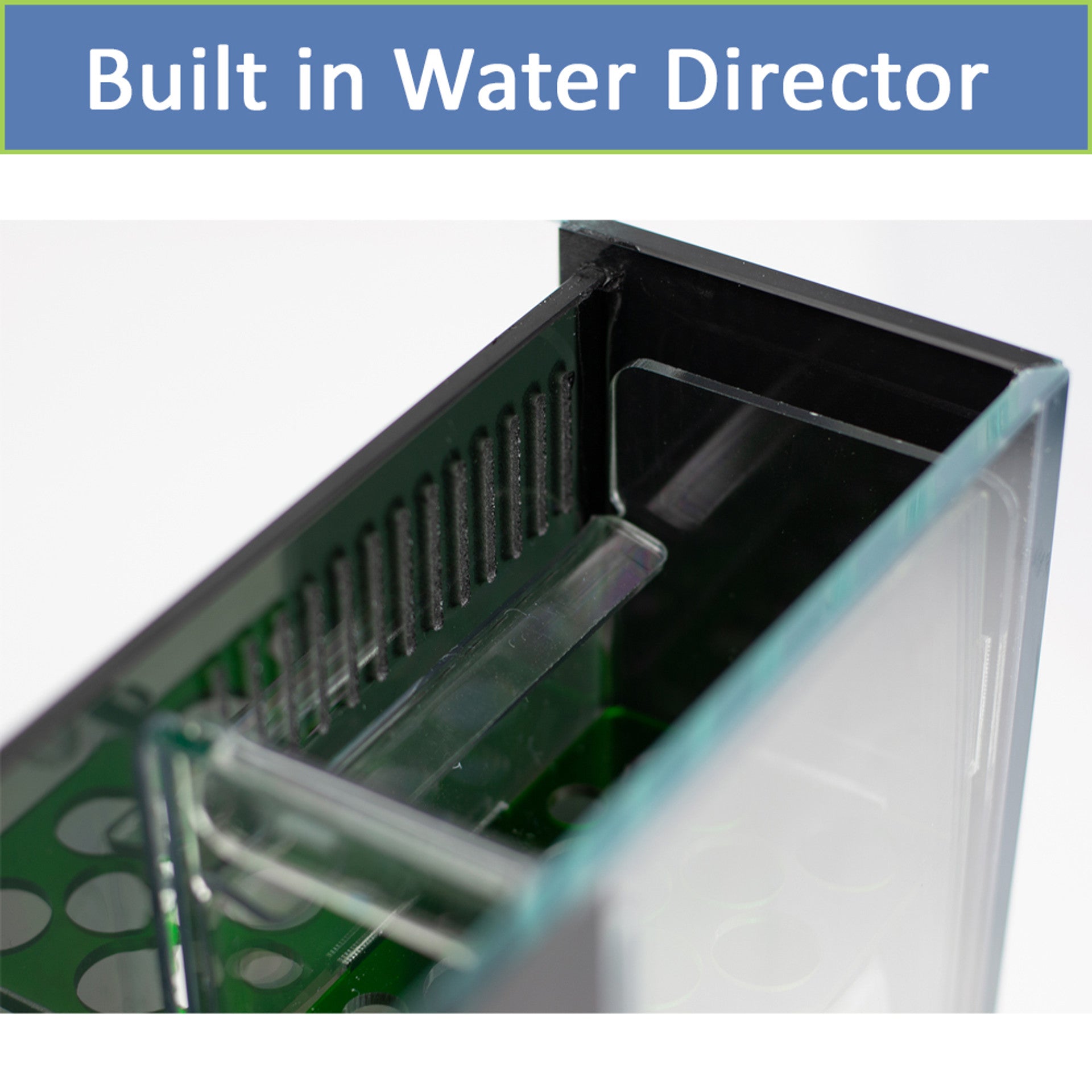 - Designed for maximum water capture and flow, forces water through filtration media and not just around it