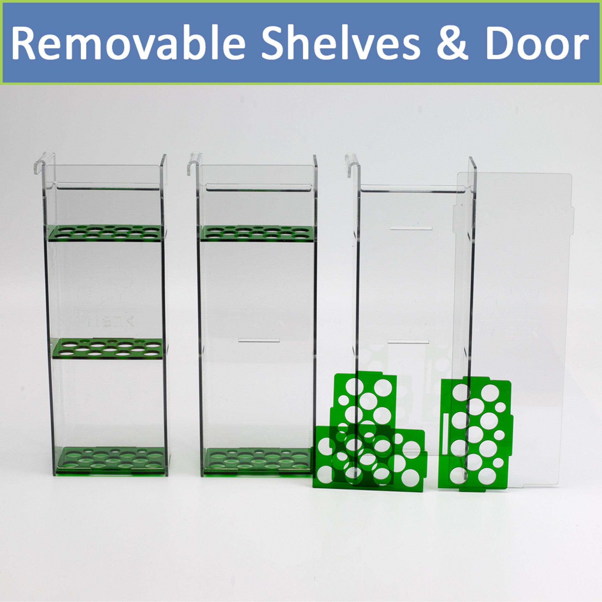- Features a bent hanging bracket and a 3 shelf design. All shelves are removable and includes a removable door